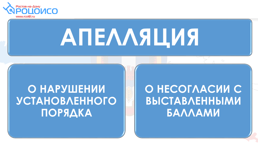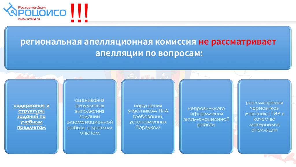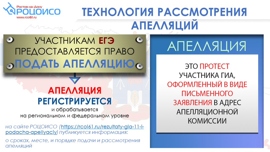 Подробная информация о работе апелляционной комиссии размещена на сайте государственного бюджетного учреждения Ростовской области «Ростовский областной центр обработки информации в сфере образования»